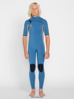 أولاد Volcom المغير 2mm fullsuit الصدر الرمز البريدي قصيرة الأكمام كروزر الأزرق ملابس 4B2PPX1366