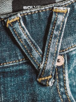- غسل قائم على التراث مع الدنيم النيلي الأخضر المبتكر والصنفرة على الفخذين وجيوب اليد ، ولون شديد الاتساخ li>