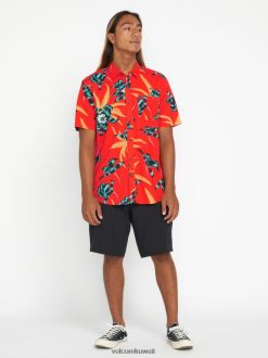 رجال Volcom قميص بأكمام قصيرة التحرير والسرد الأخضر للجيش ملابس 4B2PPX148