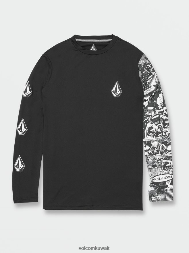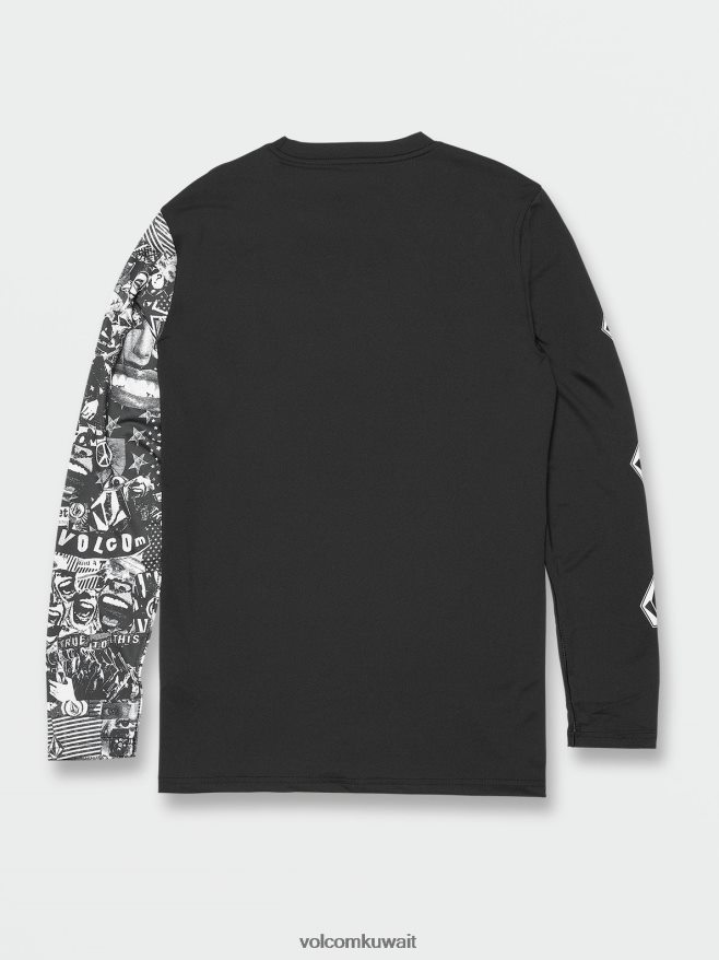 رجال Volcom مجمعة حجرية أيقونية بأكمام طويلة upf 50 rashguard أسود ملابس 4B2PPX112