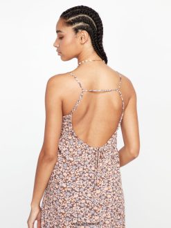 - فستان كامي متوسط الطول مع لوحة صدر إمبراطورية أمامية مجمعة وشق جانبي وأحزمة سباغيتي قابلة للتعديل li>