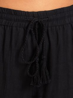 لا شيء يقول المشاعر الباردة تمامًا مثل بنطلون الشاطئ. هذا البنطال الأسود واسع الساق للغاية يتميز بحزام خصر مطاطي مريح مع حبل مضفر من الحبل لإضفاء لمسة ساحرة على الذوق الساحلي.