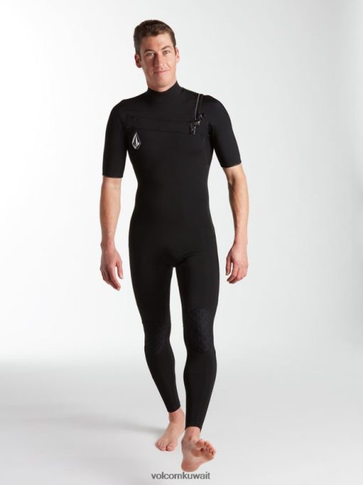 رجال Volcom المغير 2 / 2mm fullsuit قصير الأكمام أسود ملابس 4B2PPX642