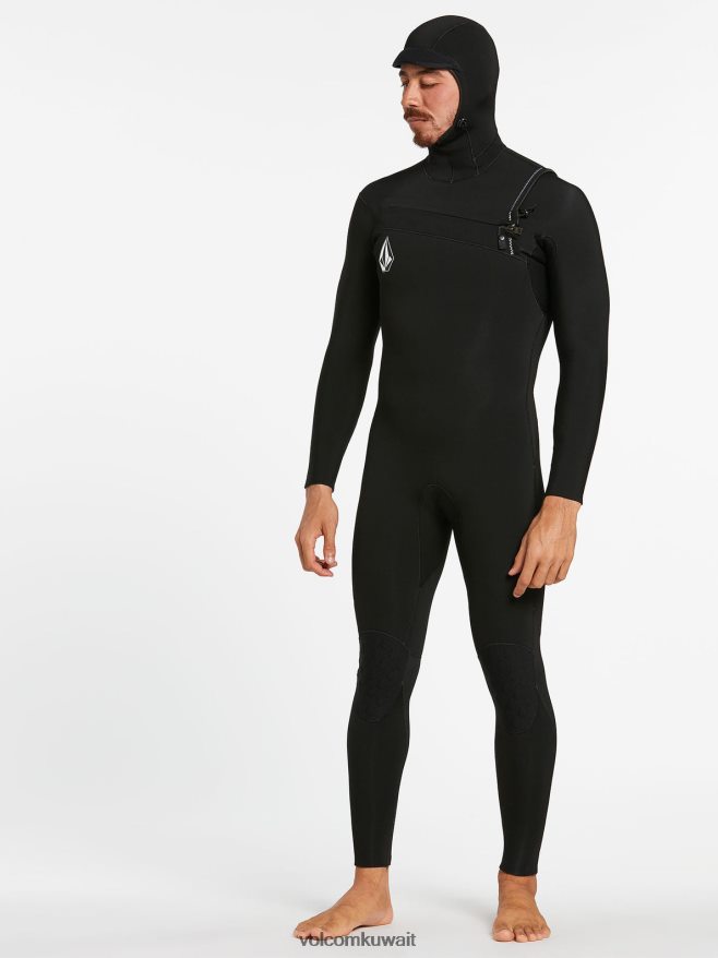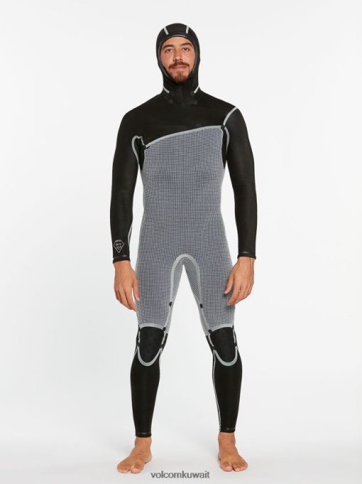 رجال Volcom المغير 4/3 مم بدلة كاملة السوستة مقنعين أسود ملابس 4B2PPX639